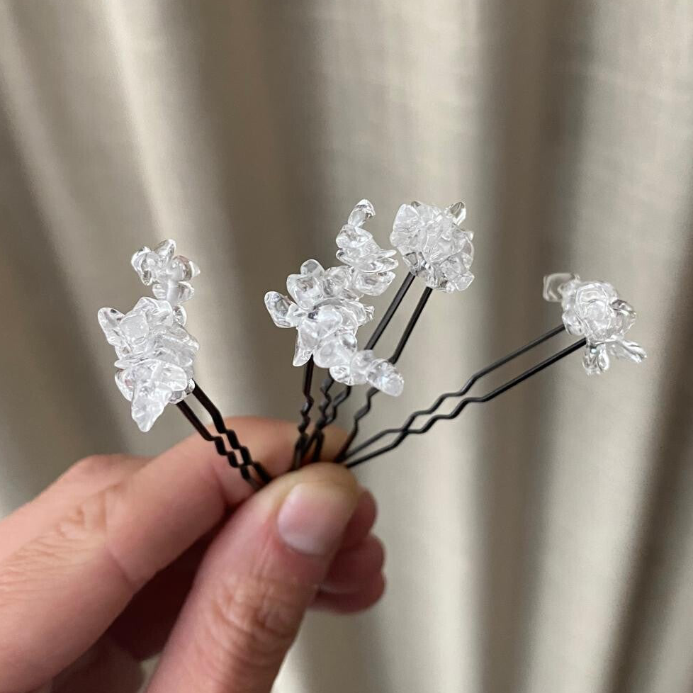 Hand embellished with lots of Clear Quartz Crystal pieces. Every piece is unique.